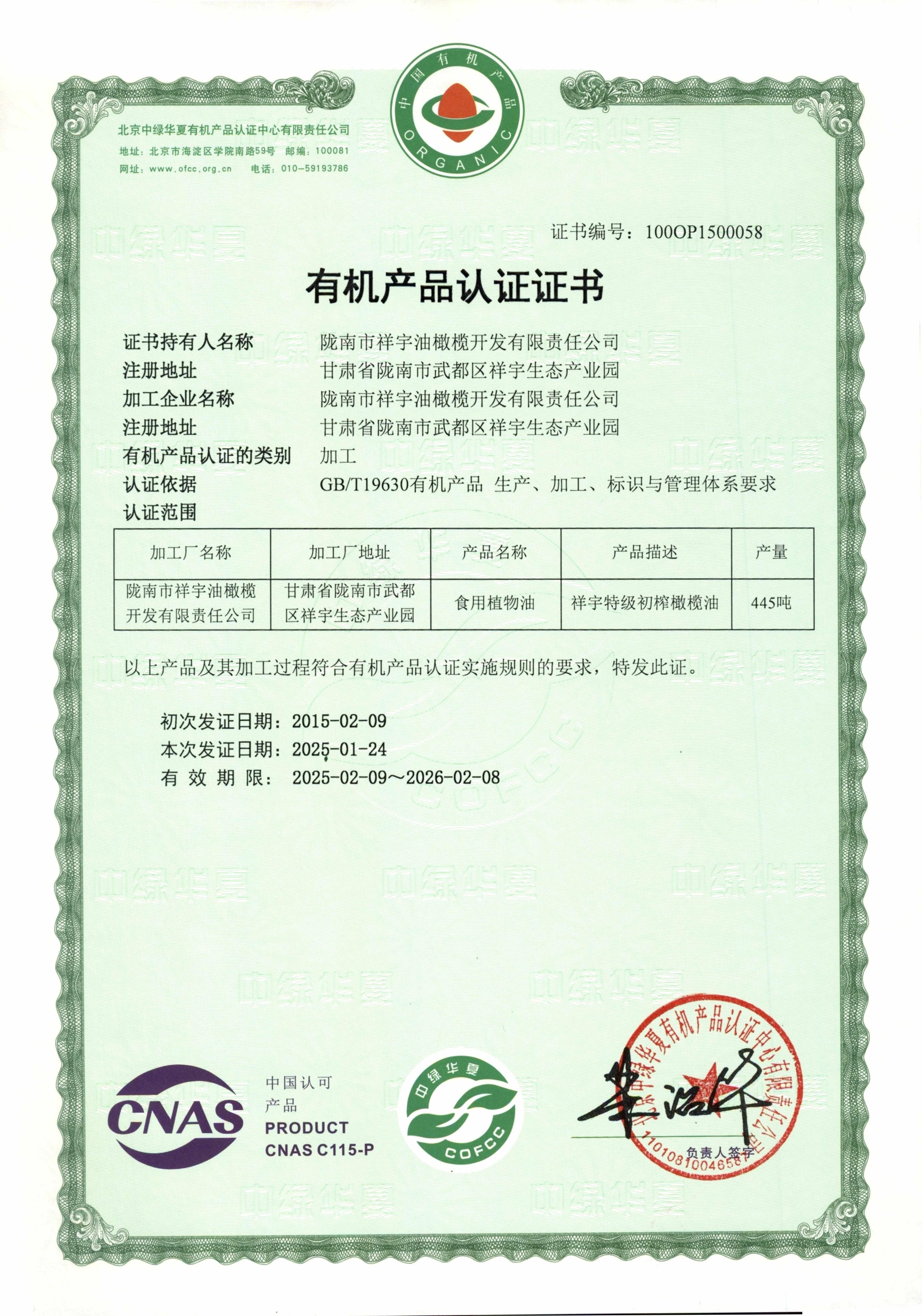 有機產(chǎn)品認(rèn)證證書