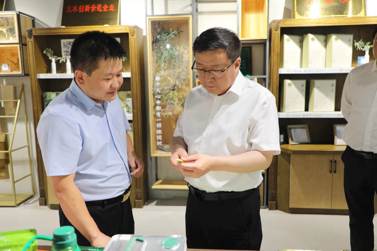 在產(chǎn)品體驗(yàn)區(qū)李建科總經(jīng)理向劉市長一行介紹了祥宇特級(jí)初榨橄欖油、橄欖茶、橄欖菜、