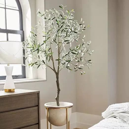 單調(diào)背景墻,放一盆油橄欖,