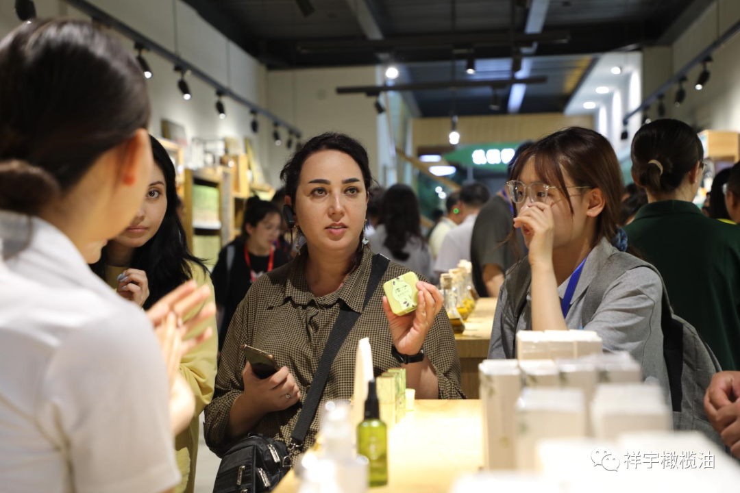 中亞五國青年代表駐足產(chǎn)品體驗區(qū)品嘗橄欖美食,