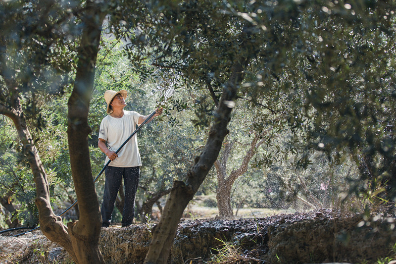 在炎熱干燥的季節(jié),農(nóng)戶會(huì)及時(shí)為油橄欖樹送來生命的甘泉。